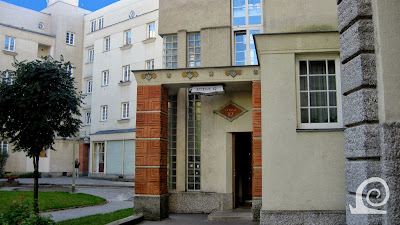 on the Karl Seitz Platz. On this facade on the corner of the Jedleseer Straße